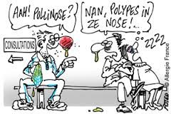 - Polype nasal et polypose naso-sinusienne : les polypes se développent sur la muqueuse du nez et des sinus paranasaux, du fait d’une inflammation chronique de celle-ci.