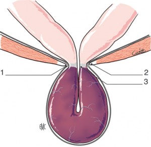 La hernie inguinale s’appelle aussi hernie de l’aine. Quand elle descend dans la bourse, elle devient inguino-scrotale, qualificatif souvent accolé par excès (y compris par le corps médical) à de simples hernies funiculaires (funiculaire est l’adjectif en rapport avec un cordon, en l’occurrence le cordon spermatique).