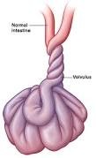 - Volvulus : torsion d’une partie du tube digestif sur elle-même, entraînant une occlusion intestinale. Concerne avant tout le colon sigmoïde. Adjectifs : volvulé ; dévolvulé lorsque le volvulus a été levé.